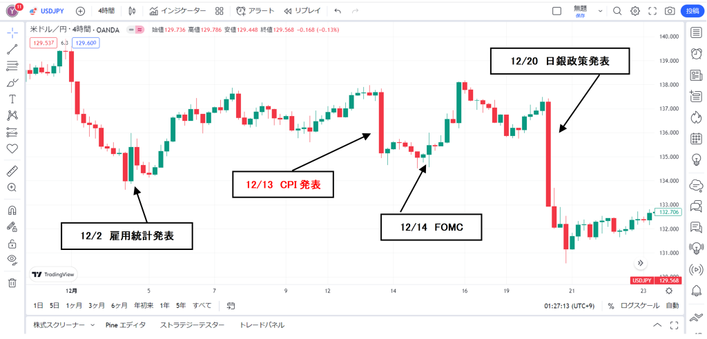 FX値動メモ2022/12/13(火)22:30 CPI(Consumer Price Index) 下落