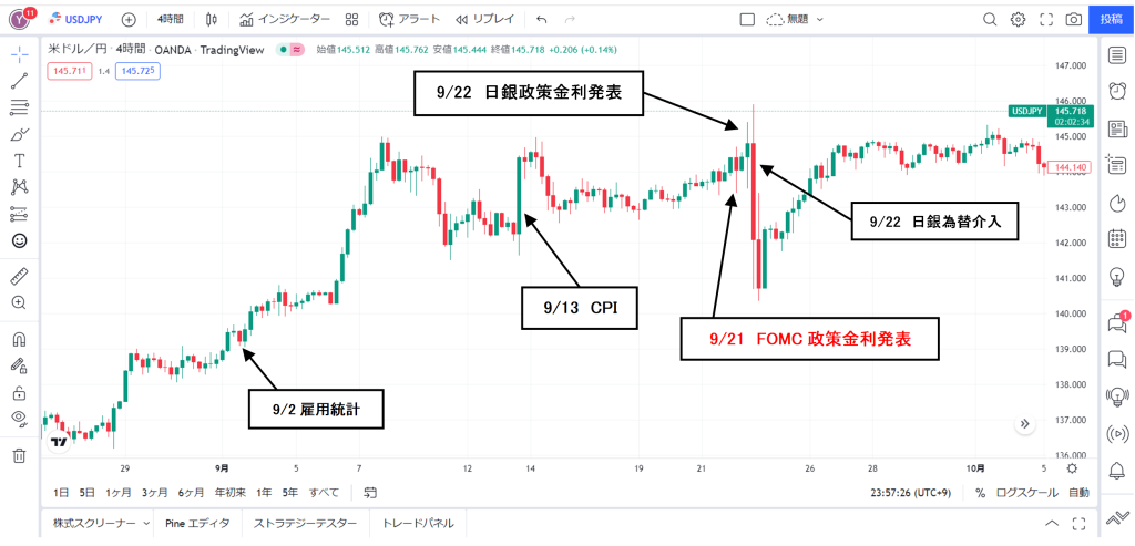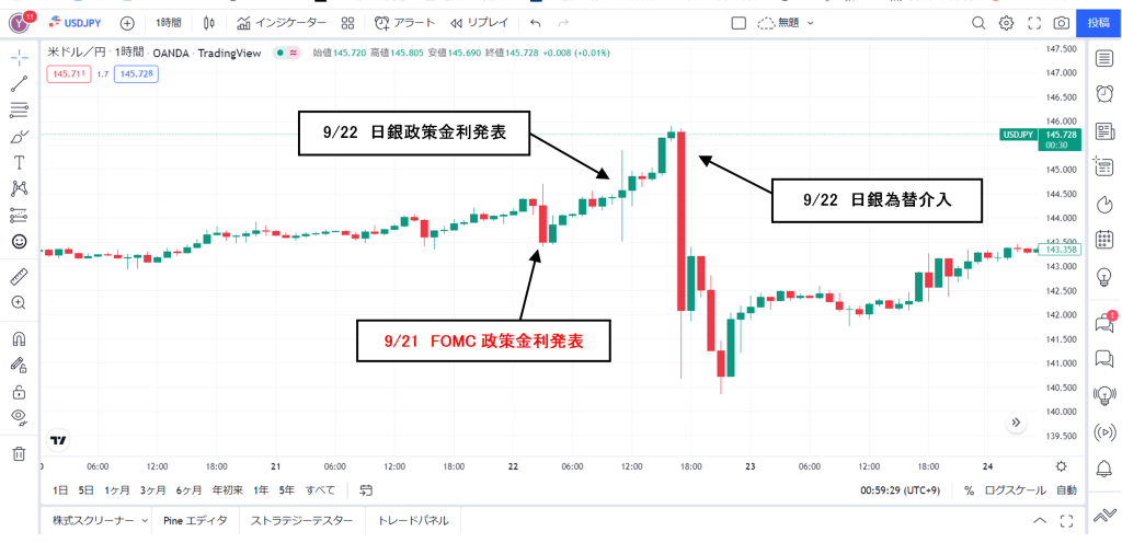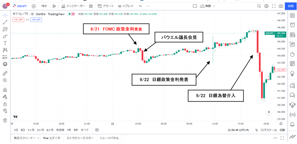 FX値動メモ2022/9/21(水)27:00 FOMC政策金利発表予想通り 上昇