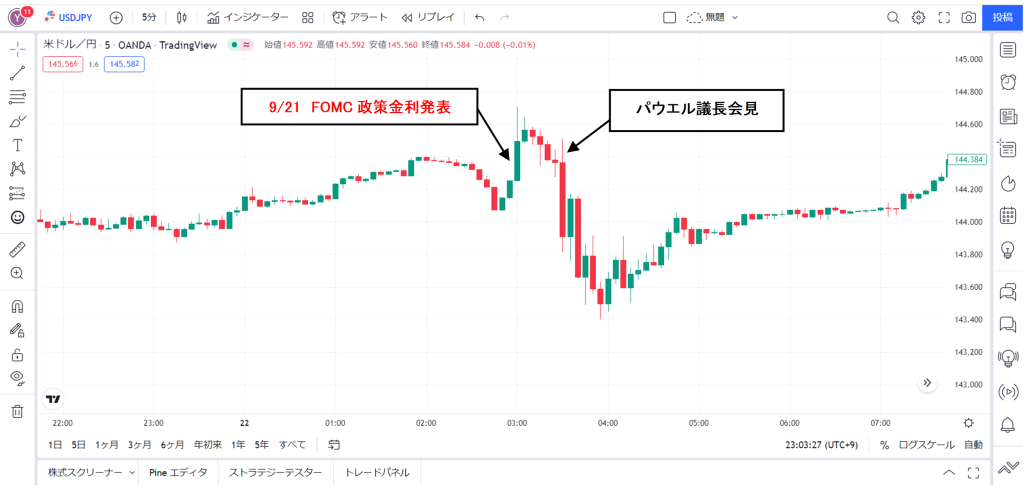 2022/9/21(水)27:00 FOMC政策金利発表予想通り 上昇